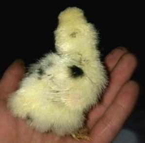 Dès la naissance on observe chez les poussins blanc tacheté noir des tâches noires et distinctes sur une base blanchâtre à jaune. Leur présence et leur situation permettent déjà d’avoir une idée approximative du nombre et de la taille des tâches sur le sujet adulte.