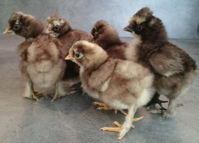 Comme sa cousine chocolat, la coucou chocolat est la petite dernière dans la famille des Poule Soie. Grace au travail de sélection de ses éleveurs, le Poule Soie club de France a également obtenu son homologation en 2017. Dès la naissance, les poussins Poule Soie chocolat sont identifiables grâce à la teinte de leur duvet « chocolat ».