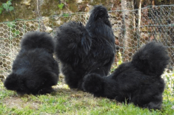 La Poule Soie noire est certainement la première Poule Soie ayant existé et ayant été sélectionnée. Elle est aussi une des variétés les plus répandues. Elle appartient à la même famille génétique de coloris que la bleue, la gris perle, la splash, la coucou, la chocolat, la coucou chocolat et elle peut donc être croisée avec ces différents coloris. Elle pourra également être croisée avec du blanc dominant pour l’obtention de la variété blanche tacheté noir.