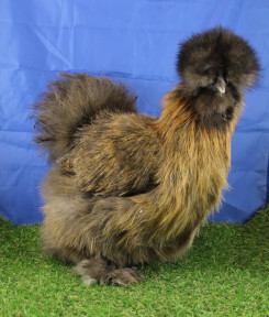 Le coq aura la tête, la huppe et la barbe brun/noirâtre. Le camail, le dos et les lancettes sont rouge orangé flammé de noir. La poitrine est noire, quelques taches brunes sont tolérées. Les épaules sont brun rougeâtre. La queue et les rémiges primaires sont noires. Les rémiges secondaires sont noires avec barbes externes brunes formant un miroir. L’abdomen, les cuisses et les plumes des tarses sont brun noirâtre. Le sous plumage est gris.