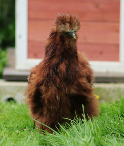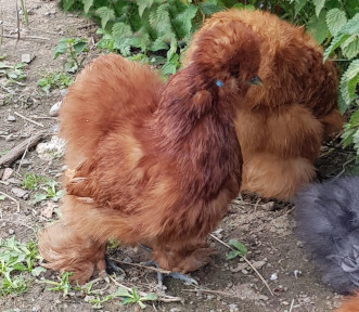 La variété rouge devra être bien marquée par rapport à la variété fauve. La Poule Soie rouge est également une couleur qu’on ne croise pas avec d’autres.